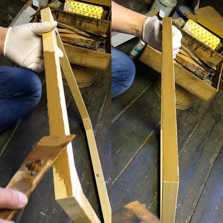 仏壇の土台となる木地(きじ)。漆を塗るための下地。(政)塗師岡仏壇店では、昔から変わらない材料で使う分量のみを見極め錆下地を拵えています。生漆と砥の粉を木ヘラでよくねり合わせ、ヘラ付けをして、しっかり乾燥させてから砥石で表面がきれいになるまで丹念に研ぎ整えていきます。地味な作業ですが、錆び下地の出来で作品の良し悪しが決まるので、延々と継承されている独特な味のある技です。