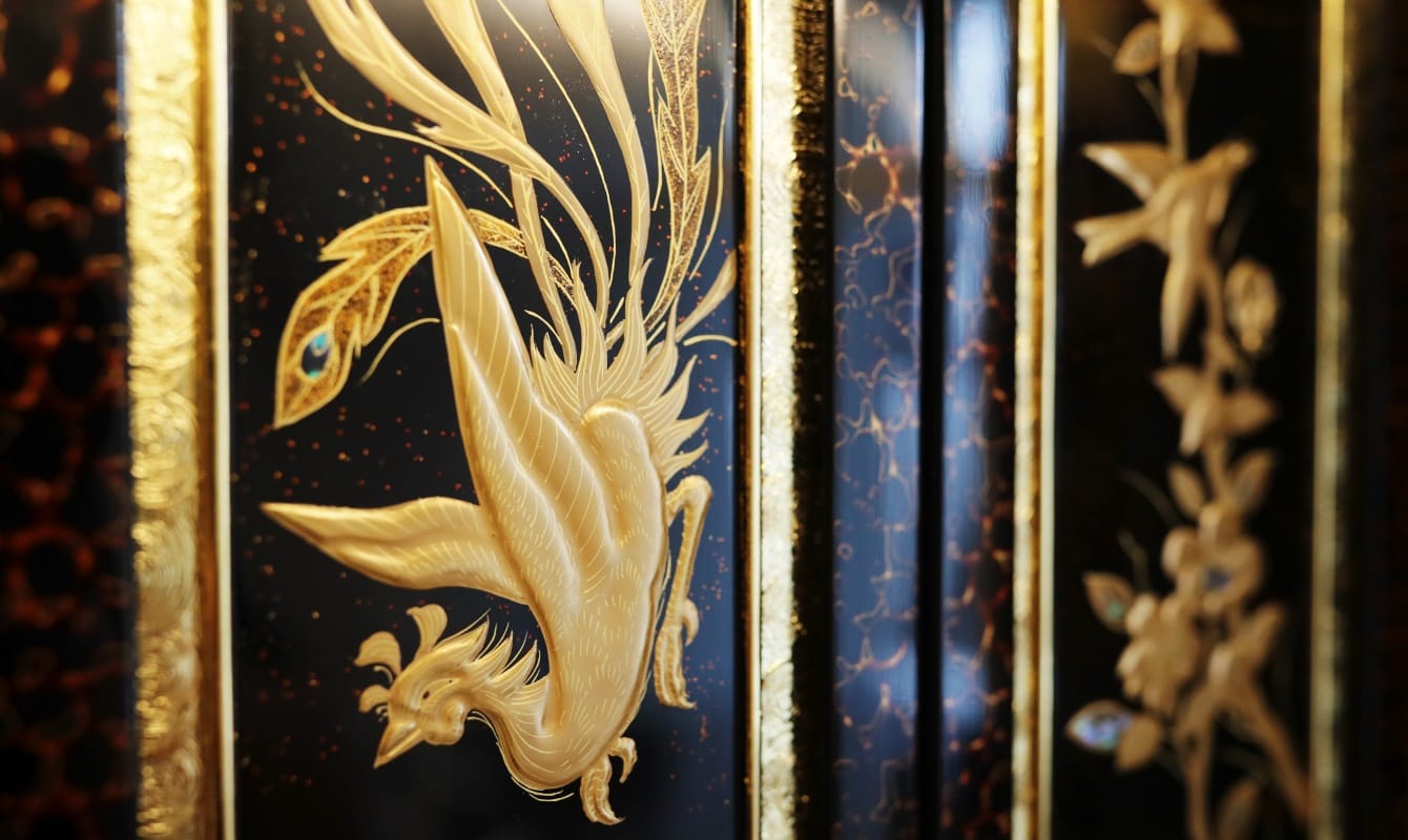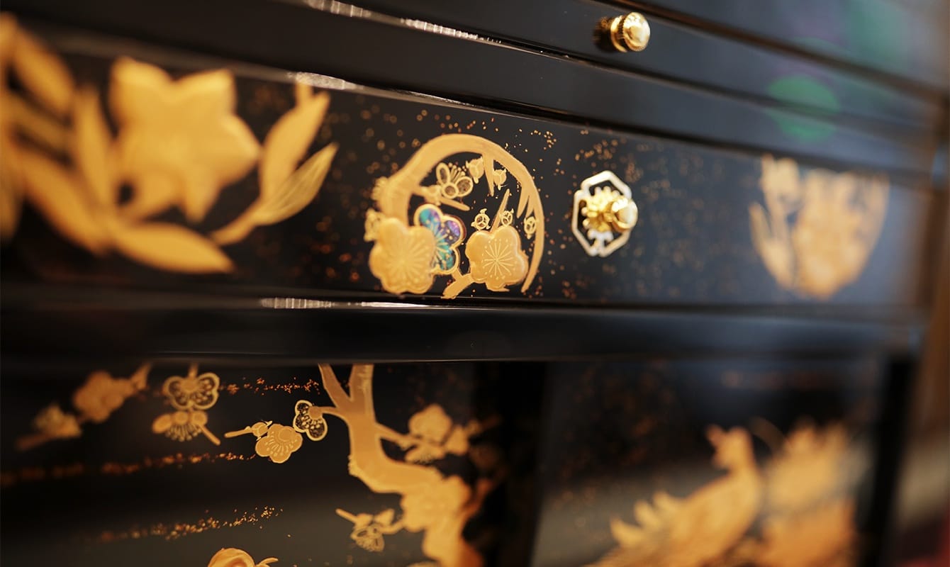 漆と金箔の流れをよむ繊細な手仕事。