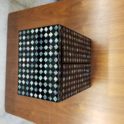 外側と内側全体に市松模様の螺鈿塗り仕上げになっています。模様が切れてなく、全体繋がっています。