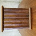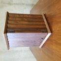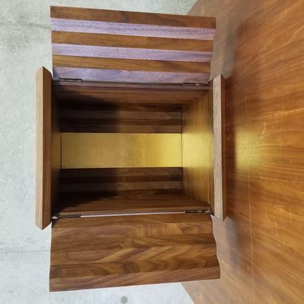 ウォールナットの木地に擦り漆で仕上げ、木目模様を活かした仕上げにしました。中の奥の中央には金箔を押し、仕上げています。