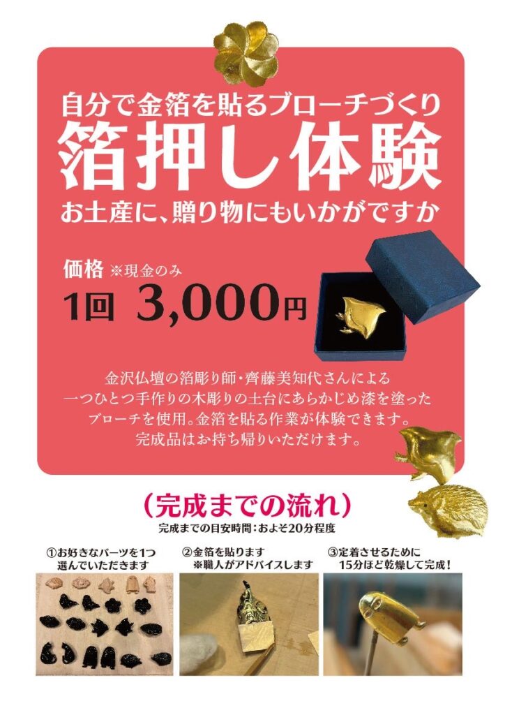 今回も金沢仏壇青年部として、小物の販売とブローチに金箔を貼る体験を行います💡