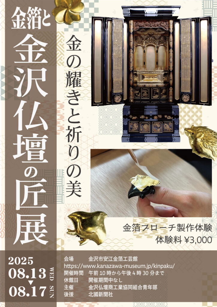 8月13日〜17日まで、安江金箔工芸館にて『金の輝きと祈りの美 金箔と金沢仏壇の匠展』が開催されます✨