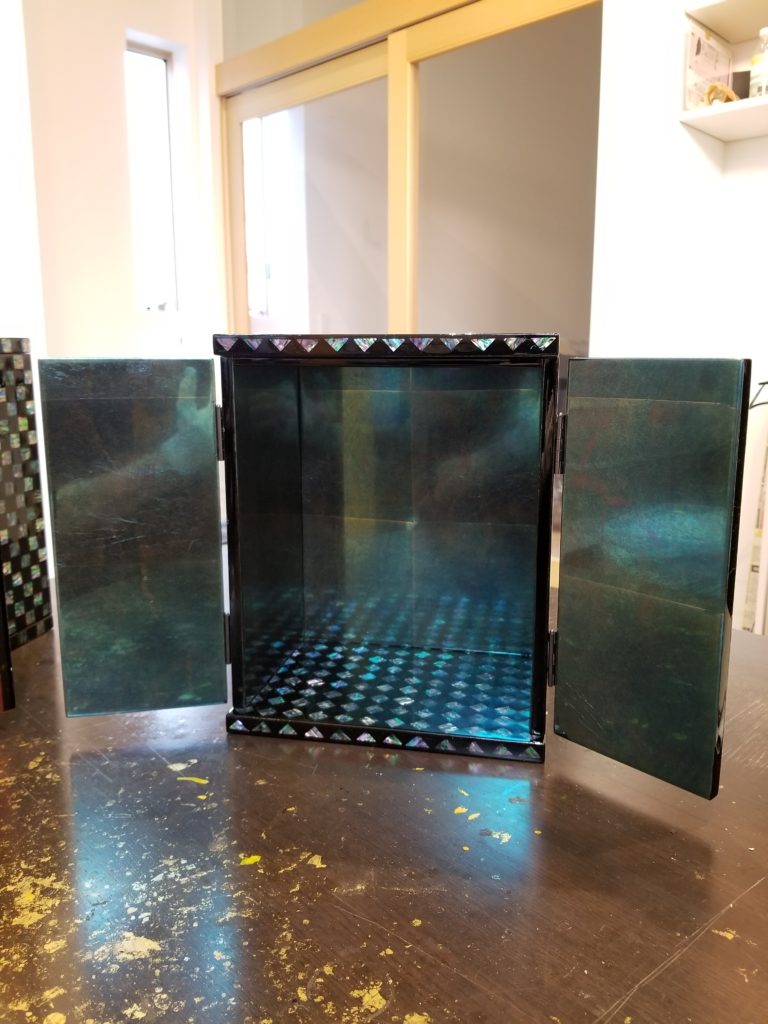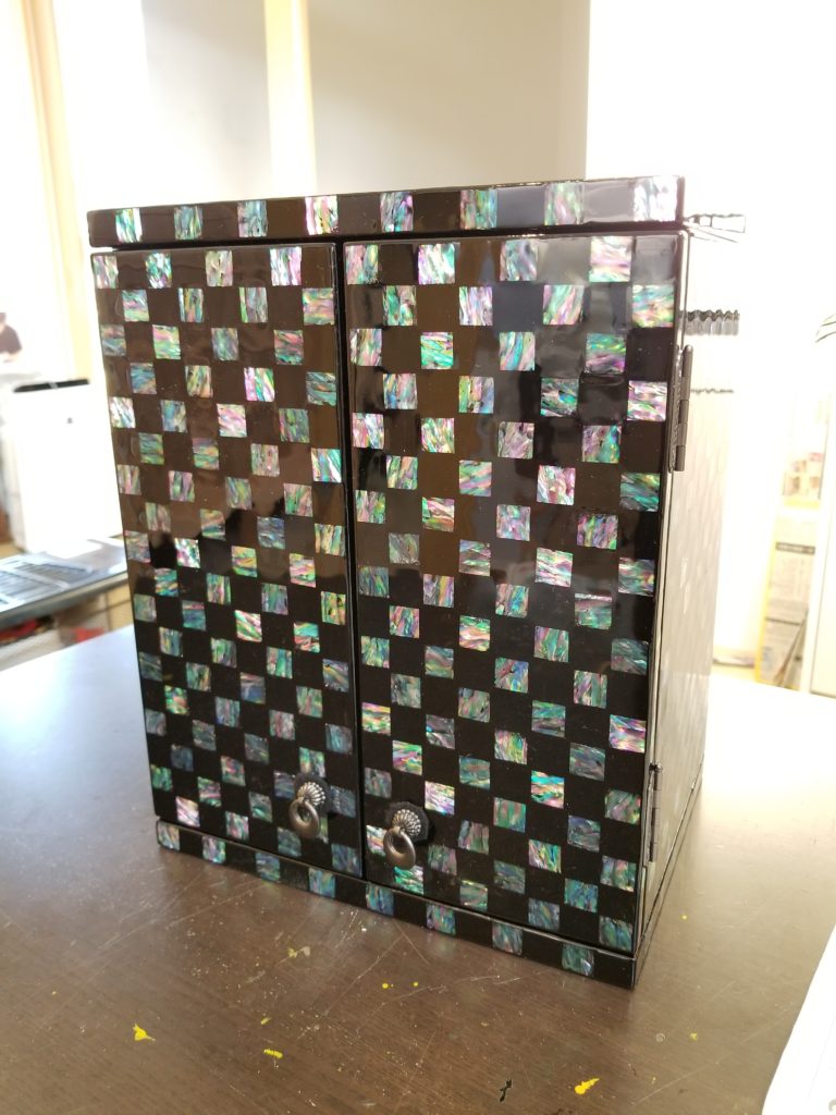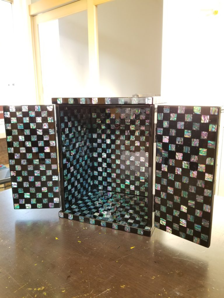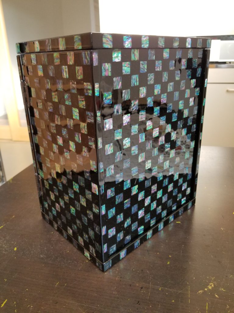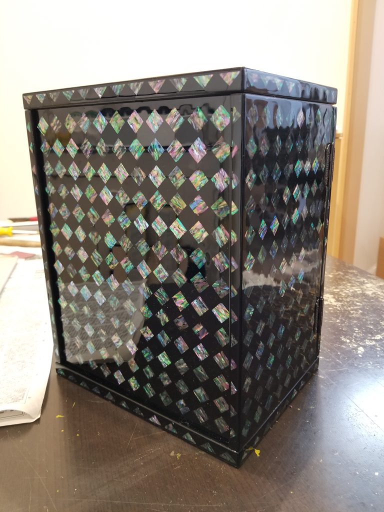 中と外側も全体的に市松模様の螺鈿塗り仕上げになっています。