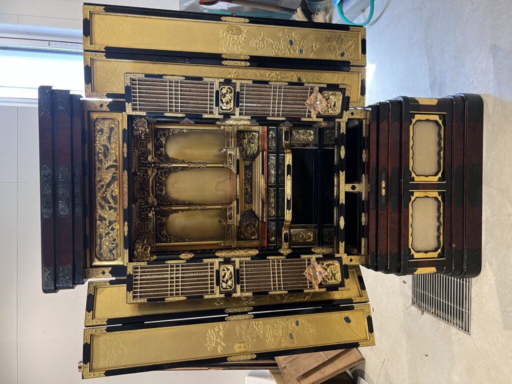 仏壇の洗い(修理)作業です💡大きさが50代の仏壇です。障子と扉を付け、全て完成です✨