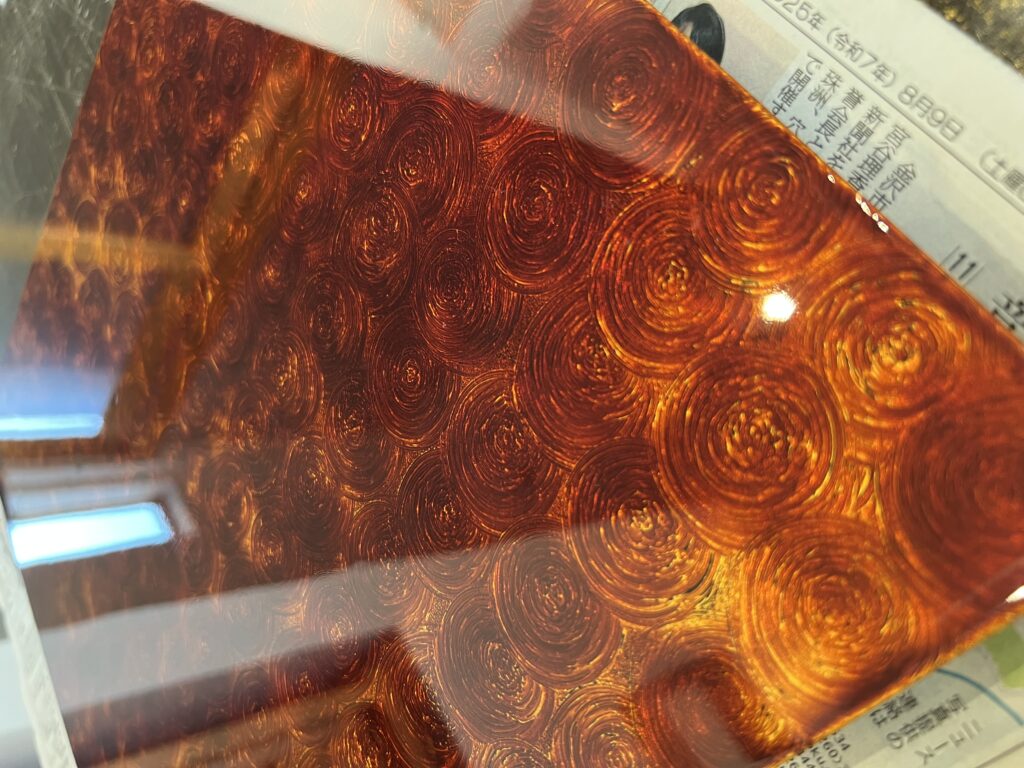 新しく作製しています。戸板の表は『金透き』という技法で仕上げました。ねじり模様が浮き出ています。